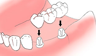 Bridges are commonly used to replace one or more missing teeth. They span the space where teeth are missing. Bridges are cemented to trimmed natural teeth or to implants surrounding the empty space.