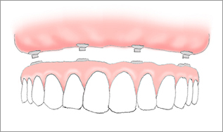 An over-denture is supported by dental implants using special attachments, rather than resting on the gums like a regular denture. These attachments stabilise the denture and allow you to remove it for cleaning. If you do not have any teeth in the jaw, but have enough bone to support implants, you may be a candidate for an over-denture.